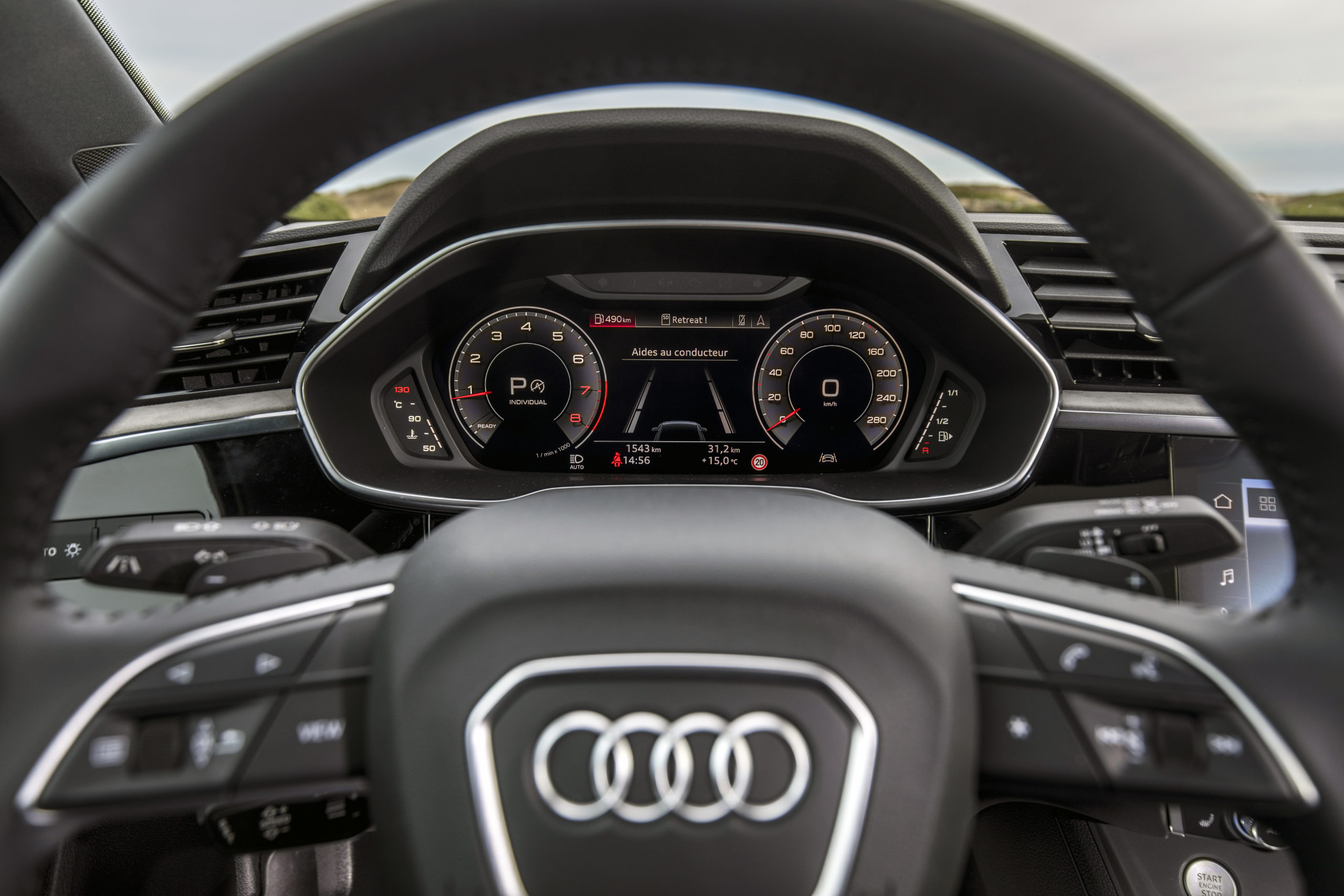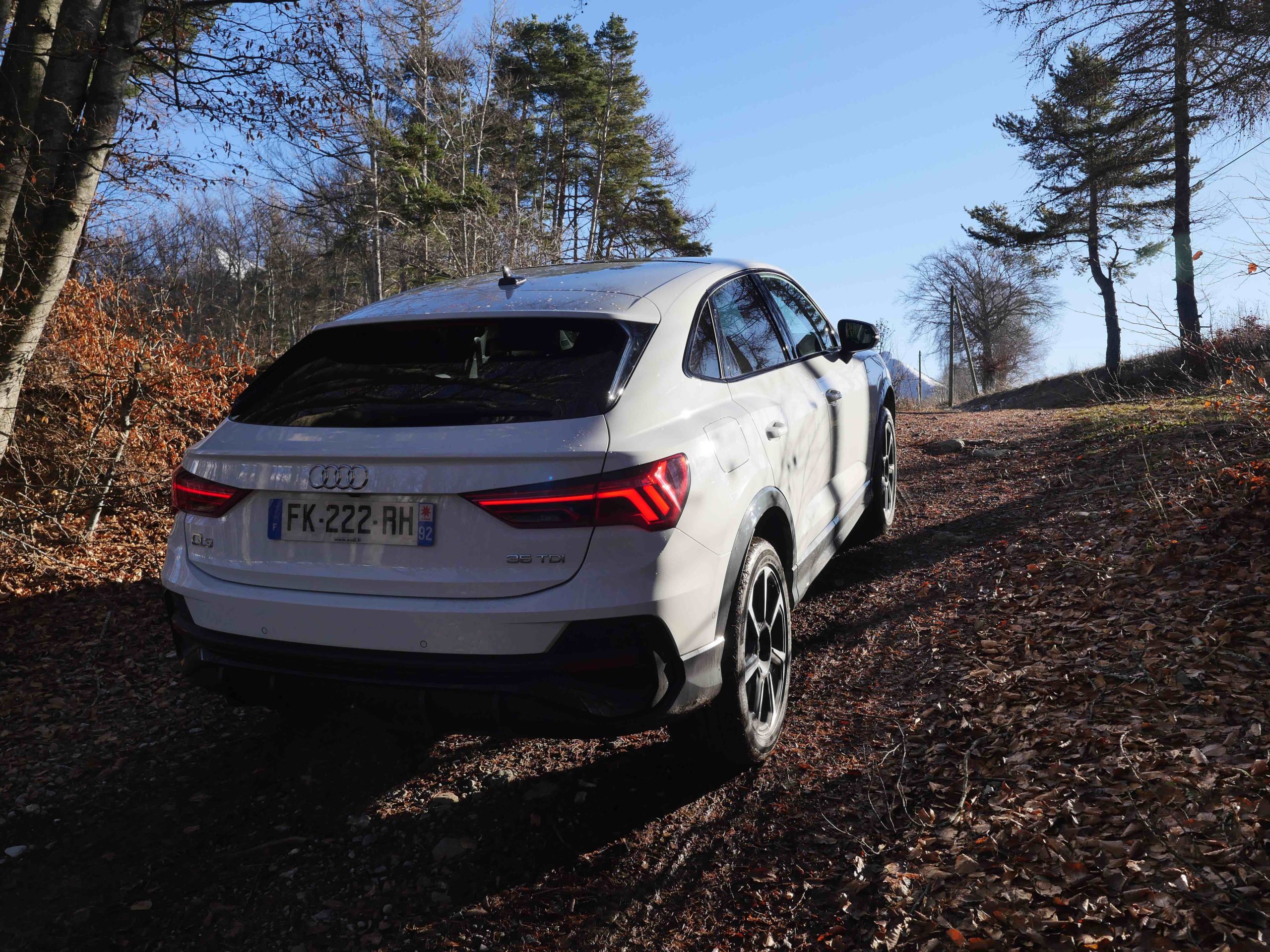 A savoir que pour le lancement sur le marché européen, il y aura un moteur essence et deux moteurs diesel. Le 2.0 TFSI de l’Audi Q3 Sportback 45 TFSI quattro est le moteur le plus puissant, avec 230 ch (169 kW). Les deux 2.0 TDI, qui délivrent 190 ch (140 kW) et 150 ch (110 kW), alimentent la Q3 Sportback 40 TDI quattro et la Q3 Sportback 35 TDI ; et c’est cette dernière que j’ai eu en main. Petit moteur en caractéristique, mais impressionnant à l’usage. Bien que un peu moi au démarrage, cette version sera certainement celle qu’adoptera les clients, en raison de son coût.