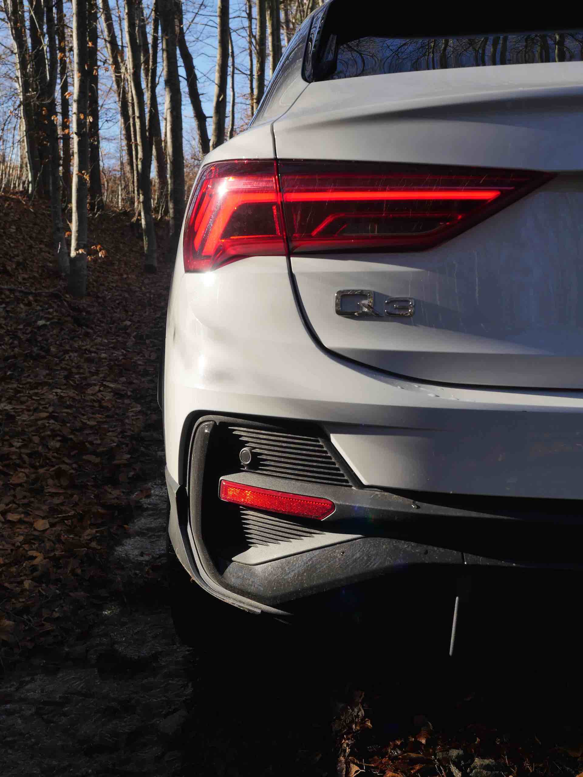 L’Audi Q3 Sportback ne laisse planer aucun doute quant à son caractère atypique entre coupé et SUV. À l’avant, la calandre Singleframe se distingue certes de son frère Q3 par une grille en nid d’abeille. Mais c’est surtout de profil que le SUV coupé compact se démarque clairement avec une ligne de toit plongeante et une ligne d’épaule plus basse. Avec ses courbes tout en muscles, l’Audi Q3 Sportback semble comme prête à bondir, même à l’arrêt. Vue de l’arrière, le hayon incliné et le becquet de toit sportif parachèvent le tout. Une véritable réussite de design ! Je vous laisse juger par vous-même avec ces quelques photos.