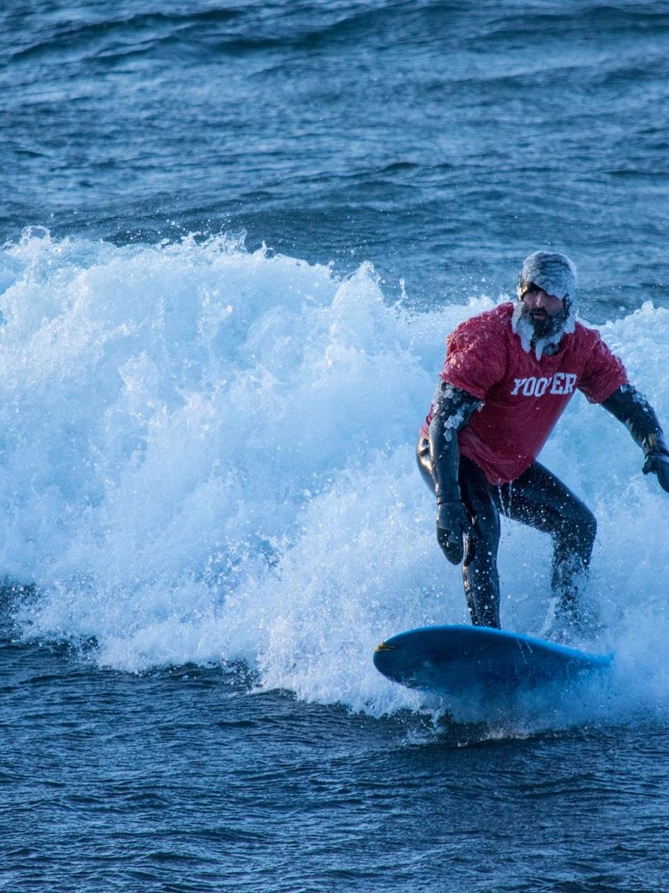 Daniel Schetter, connu sous le nom de “Surfer Dan, est devenu une légende locale à force de le voir surfer sur les vagues gelées du lac Supérieur. Qu’il pleuve, qu’il vente, qu’il neige, Surfer Dan affronte les éléments pour continuer son surf, même si sa barbe devient complètement de glace.