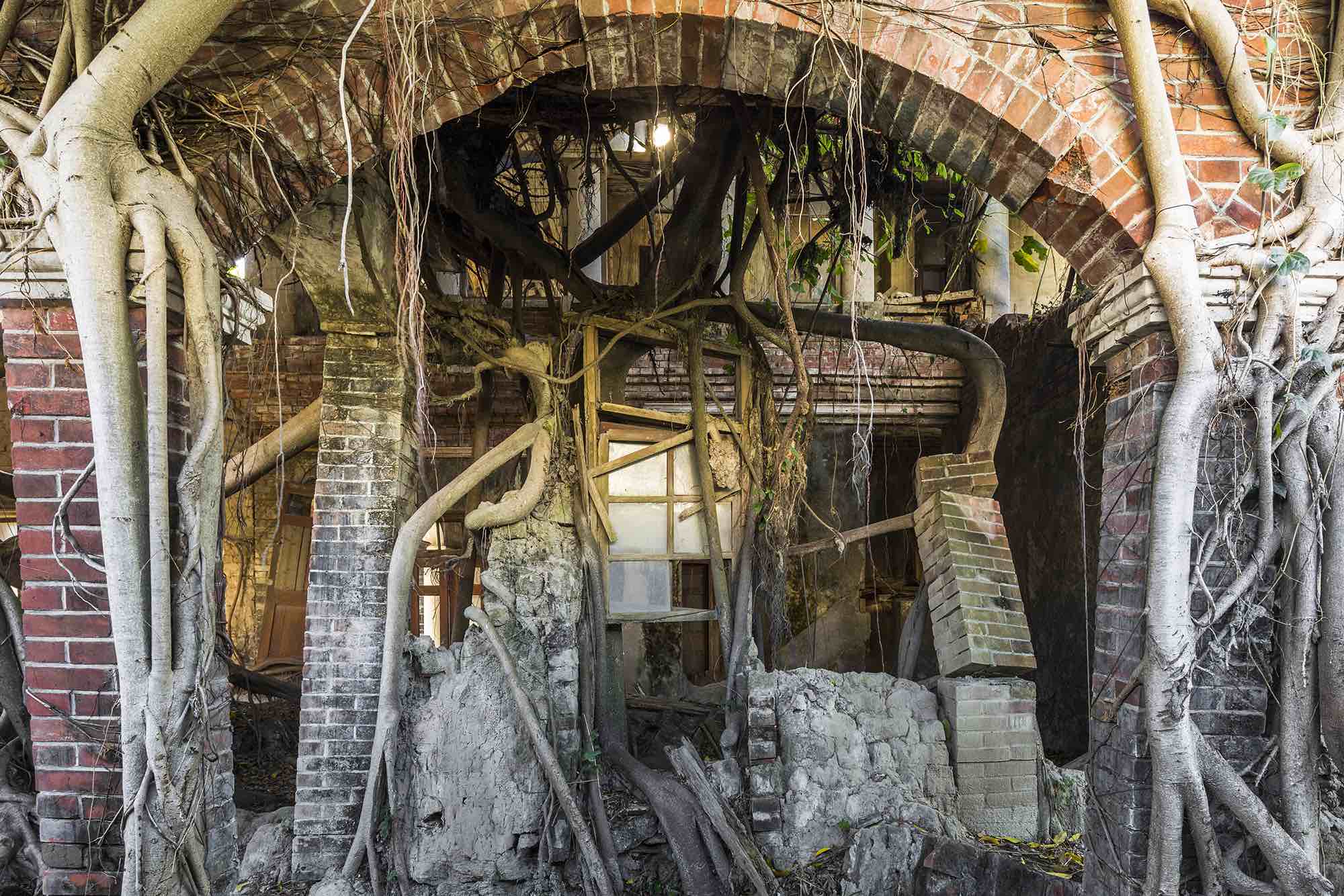 Inspiré par un documentaire animalier qu’il a vu enfant, le photographe parisien Jonathan Jimenez, surnommé Jonk, parcourt le monde à la recherche de structures artificielles abandonnées et récupérées par la nature. Une jungle envahissant un théâtre délabré à Cuba, des racines encerclant un vieux manoir à Taïwan ou un jardin sauvage poussant dans une ancienne serre en Belgique. Reflet de sa conscience écologique, les photographies de Jonk montrent et démontrer que dans la lutte de pouvoir entre l’homme et la nature, la nature l’emporte toujours.