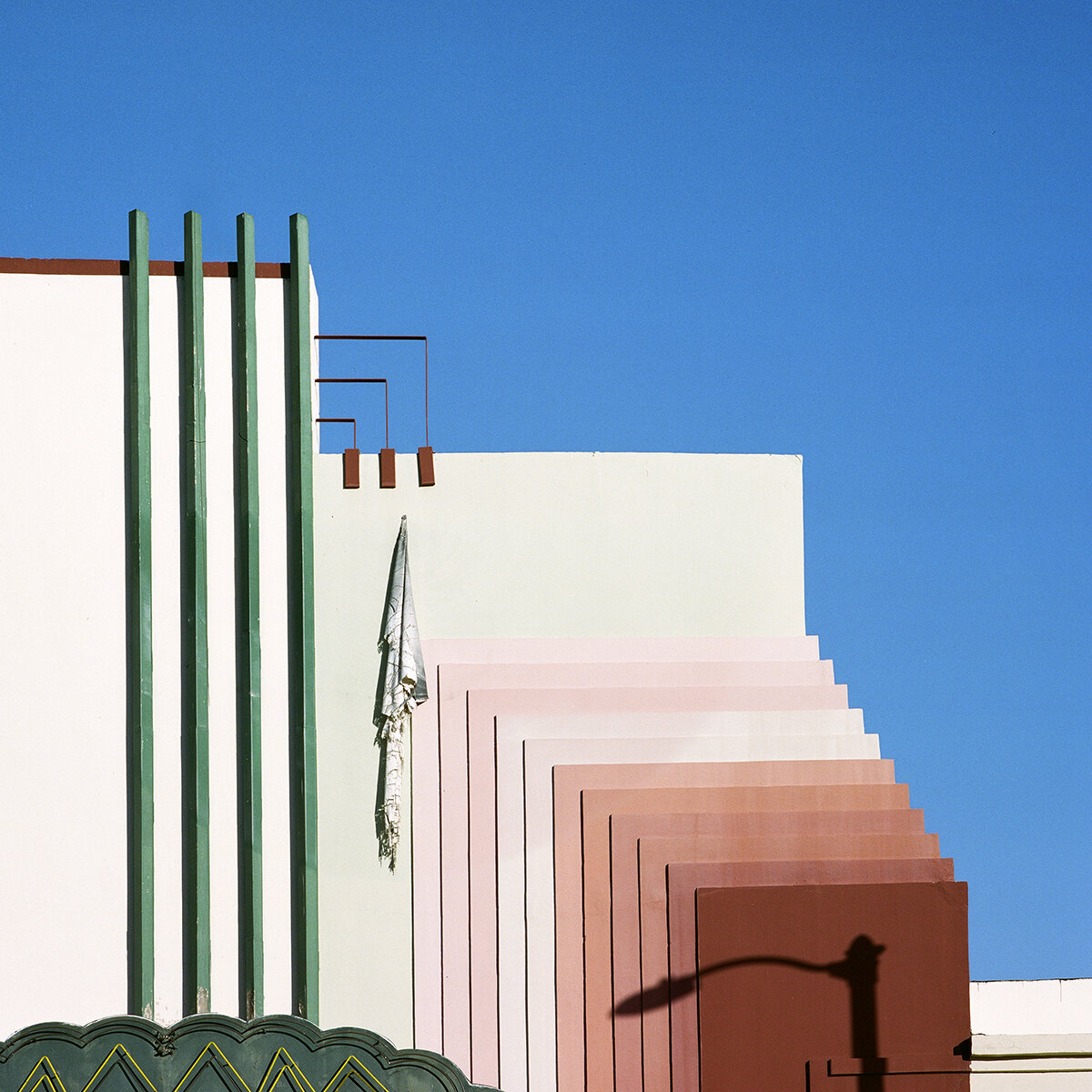 Sinziana Velicescu décrit son travail comme une célébration des “couleurs vives, de la géométrie forte et des lignes nettes de l’architecture vernaculaire, à la fois ancienne et nouvelle”. La photographe résume ainsi des scènes familières, les réduisant à une série de couleurs et de formes, insufflant une nouvelle vie à un sujet clairement sans vie au départ.