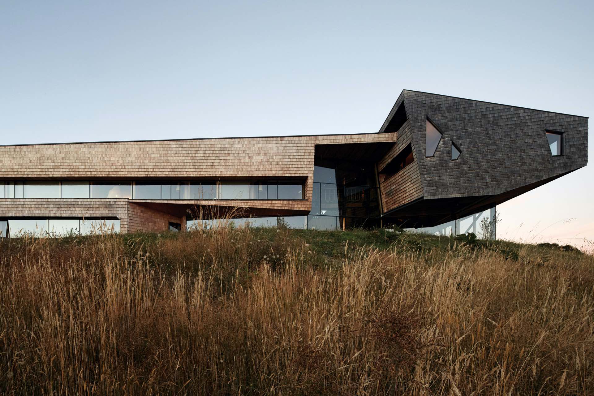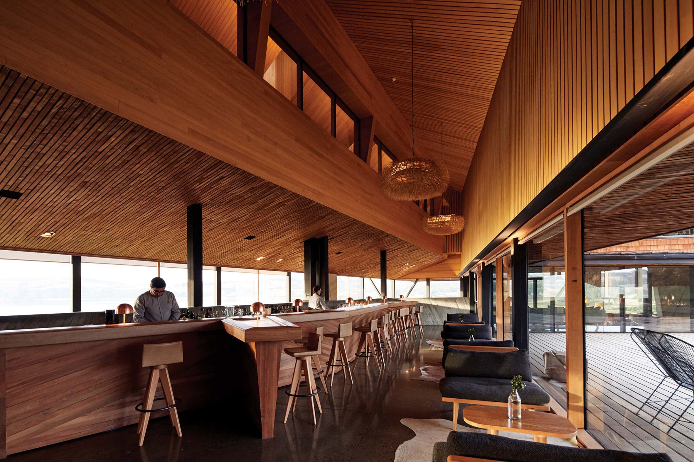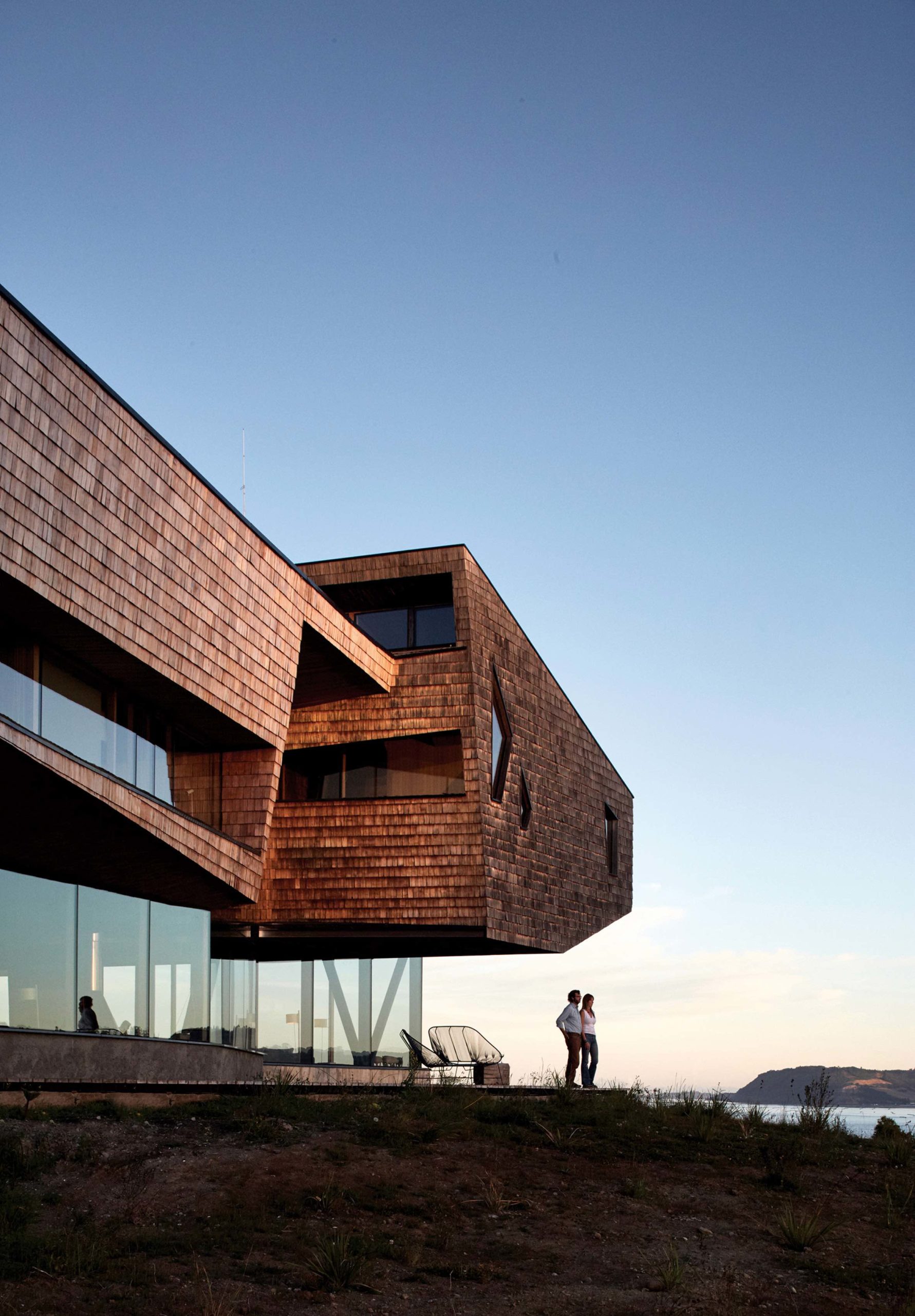 Après une étude approfondie des conditions climatiques sur la propriété, l’hôtel Tierra Chiloé a été conçu pour optimiser les ressources naturelles, y compris l’énergie éolienne, solaire et l’eau de pluie. Utilisant les traditions locales de menuiserie, l’extérieur de l’hôtel a été revêtu de bardeaux de bois afin d’assurer un faible niveau de déperdition de chaleur, également en carreaux de mélèze local, connus pour leurs propriétés thermiques. Dans cette préoccupation pour la durabilité, l’eau est recyclée et les ressources naturelles sont conservées au maximum. Tandis qu’un design géométrique et une ventilation transversale naturelle réduisent l’utilisation de combustibles fossiles et minimisent l’empreinte carbone.