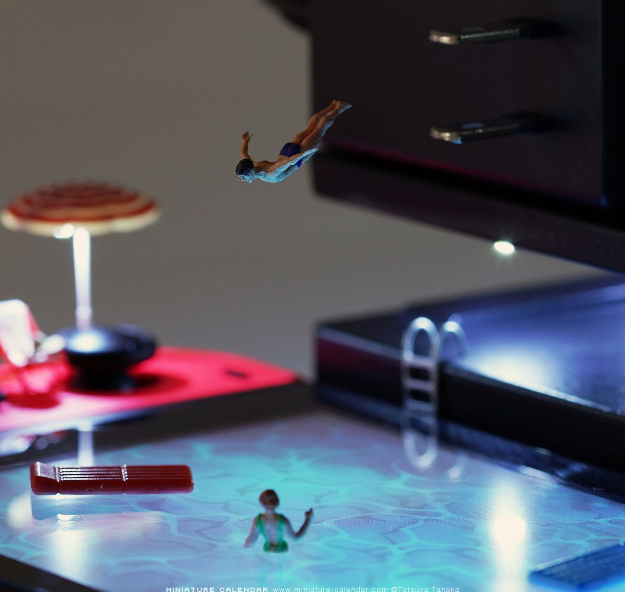 est un artiste et photographe japonais qui crée de l’art miniature presque tous les jours depuis 2011 ! Ses projets quotidiens se sont transformés en une sorte de calendrier décalé qui vous fera instantanément sourire. Littéralement nommés “Calendrier miniature”, les petits scénarios de Tatsuya Tanaka présentent toutes sortes d’objets ordinaires avec une petite touche bien maline. Il réutilise des gadgets technologiques sans lesquels nous ne pouvons absolument pas vivre et les transforme en quelque chose d’inattendu et à la perspective des plus intéressantes. Qu’il s’agisse d’une Nintendo Switch transformée en piscine ou d’écouteurs utilisés comme sèche-cheveux, cette collection réinterprétés ajoutera sûrement un peu de rire et de plaisir à votre quotidien.
