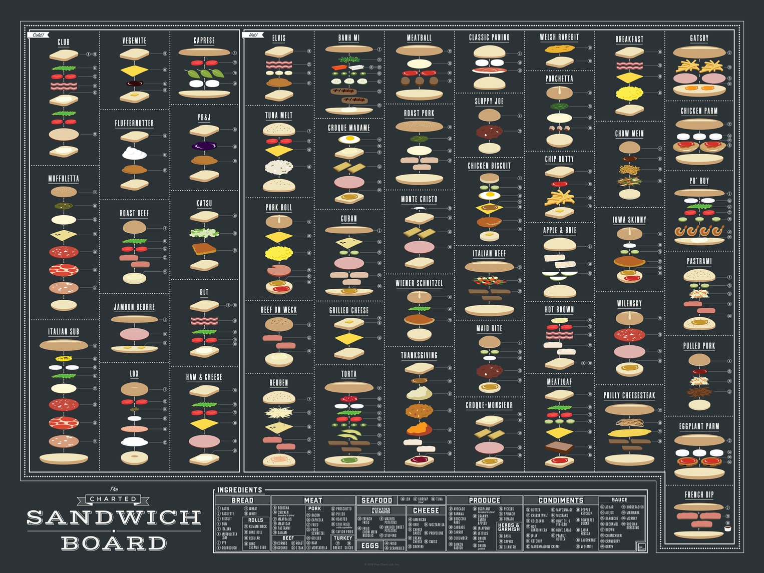 🥪 Offrez-vous un tableau illustrant plus de 50 sandwiches populaires