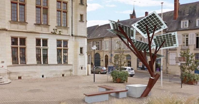 La ville de Nevers a inauguré ce lundi 29 mai le premier “eTree” d’Europe. Son feuillage photovoltaïque permet de recharger son téléphone portable, d’accéder à la wi-fi, ou encore de se protéger du soleil comme sous un vrai arbre.
