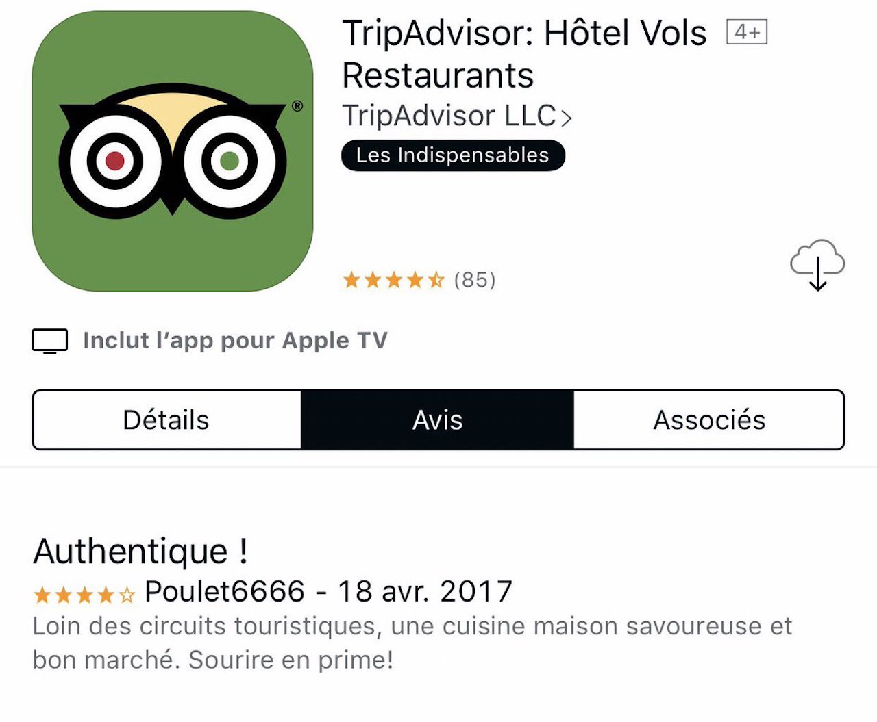 Et oui, il y a des gens qui donnent leur avis sur l’appli Trip Advisor en commentant le…