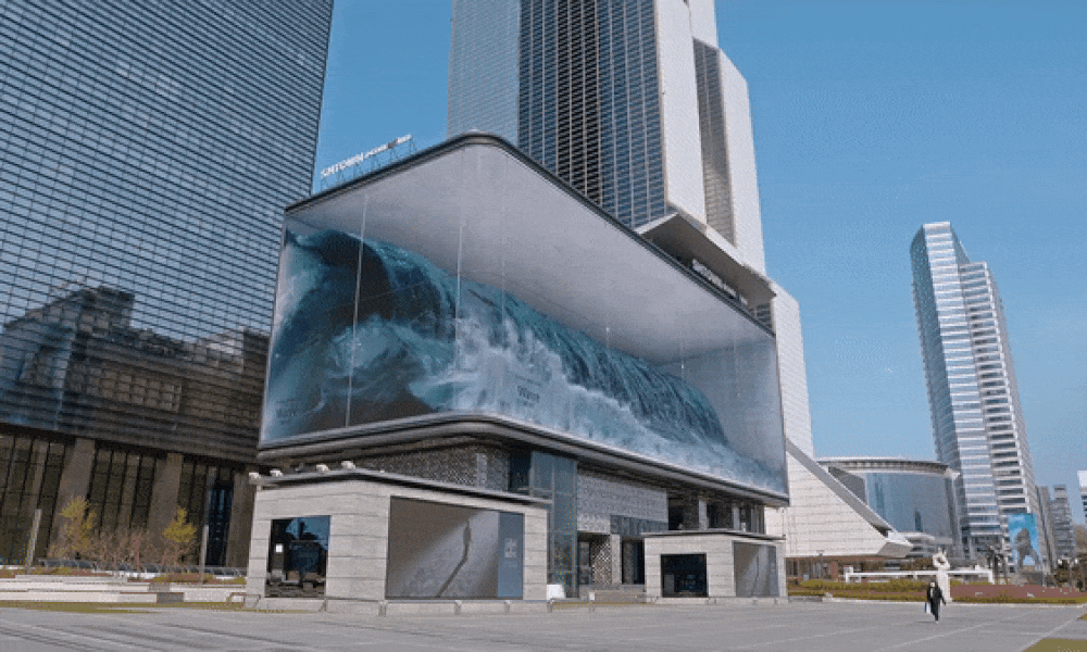 Le plus grand écran extérieur de Corée ressemble à un aquarium géant avec une piscine à vagues à…